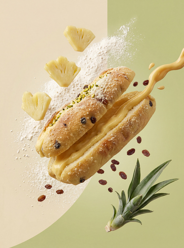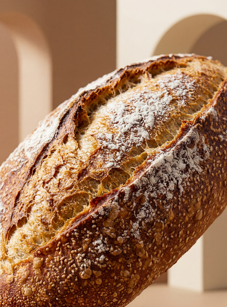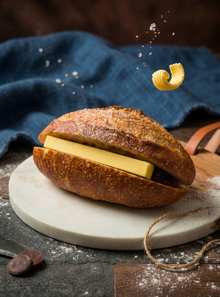 俯拍 + 45° 侧拍交替,展现面包的肌理与形态