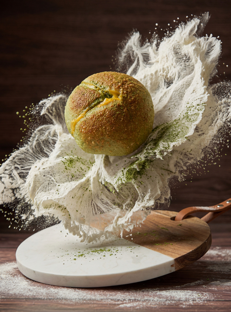 从悬浮的面粉烟雾,到堆叠的几何构图,再到掰开时的松软纹理,每一张都在诉说食物的温度与美感。